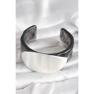 Siyah Mermer Desen Akrilik Plastik Gümüş Oval Plaka Model Vintage Kadın Bilezik