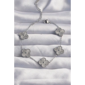 316L Çelik Gümüş Renk Motifli Yonca Bileklik