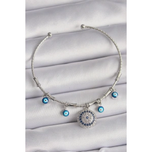 Pirinç Gümüş Renk Sallantı Zirkon Taşlı Nazar Boncuk Figür Charm Bileklik