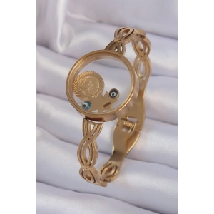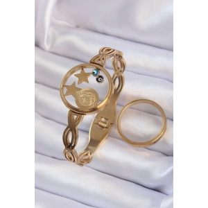 316L Çelik Altın Renk İçi Nazar Boncuk ve Yıldız Figürlü Açılabilir Fanus Kelepçe