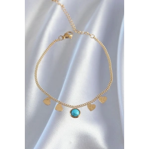 316L Çelik Gold Renk Minimal Kalpli Mavi Taş Detaylı Bileklik