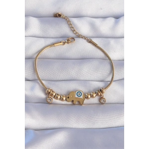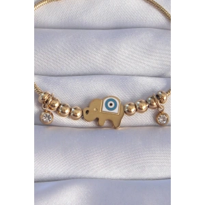 316L Çelik Gold Renk Zirkon Taşlı Nazarlı Fil Tasarımlı Bileklik