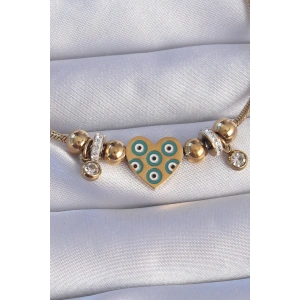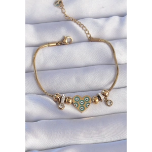 316L Çelik Gold Renk Nazarlı Kalp Model Zincir Bileklik