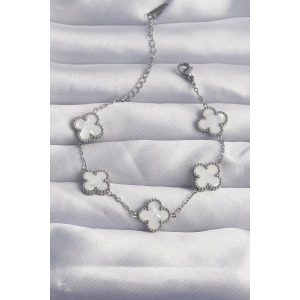 316L Çelik Gümüş Renk Beyaz Sedefli Yonca Bileklik