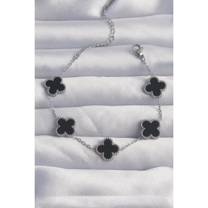 316L Çelik Gümüş Renk Siyah Mineli Yonca Bileklik