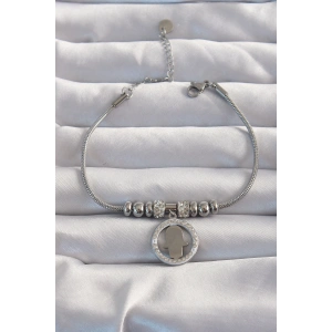 316L Çelik Gümüş Renk Zirkon Taş Aksesuarlı Fatma Ana Eli Bileklik
