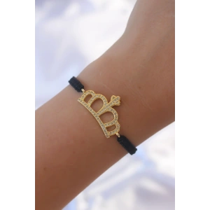 Gold Renk Zirkon Taşlı Taç Figür Makrome Bileklik