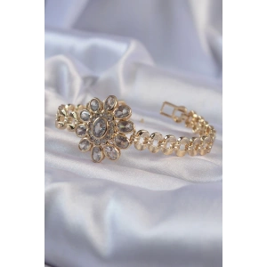 Pirinç Gold Renk İri Zirkon Taşlı Çiçek Figürlü Bileklik