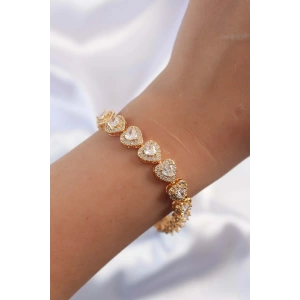 Pirinç Vip Seri Gold Renk Zirkon Taşlı Kalp Model Bileklik
