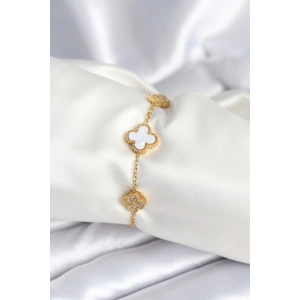316L Çelik Zincir Zirkon Taşlı Yonca Beyaz Kadın Bileklik