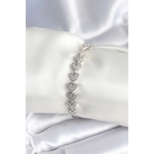 Pirinç Gümüş Renk Kalp Model Kadın Bileklik
