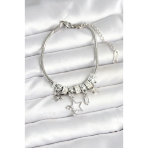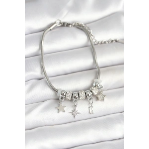 Pirinç Gümüş Renk Yıldız Charmlı Kadın Bileklik