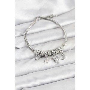 Pirinç Gümüş Renk Ay Charm Model Charmlı Kadın Bileklik