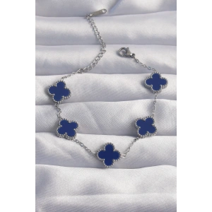 316L Çelik Gümüş Renk Mavi Mineli Yonca Bileklik