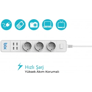 Ftr14 Type-c Girişli Akım Korumalı 10’lu Priz, 3 Usb