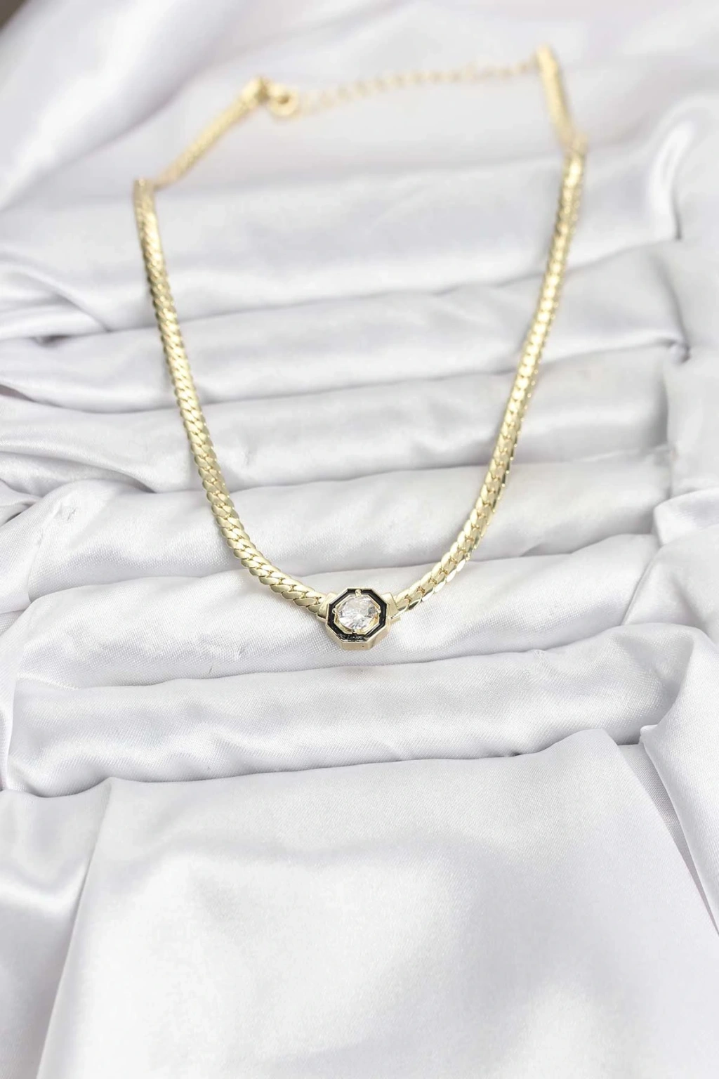 Gold Renk Pirinç Zirkon Taşlı Kadın Kolye