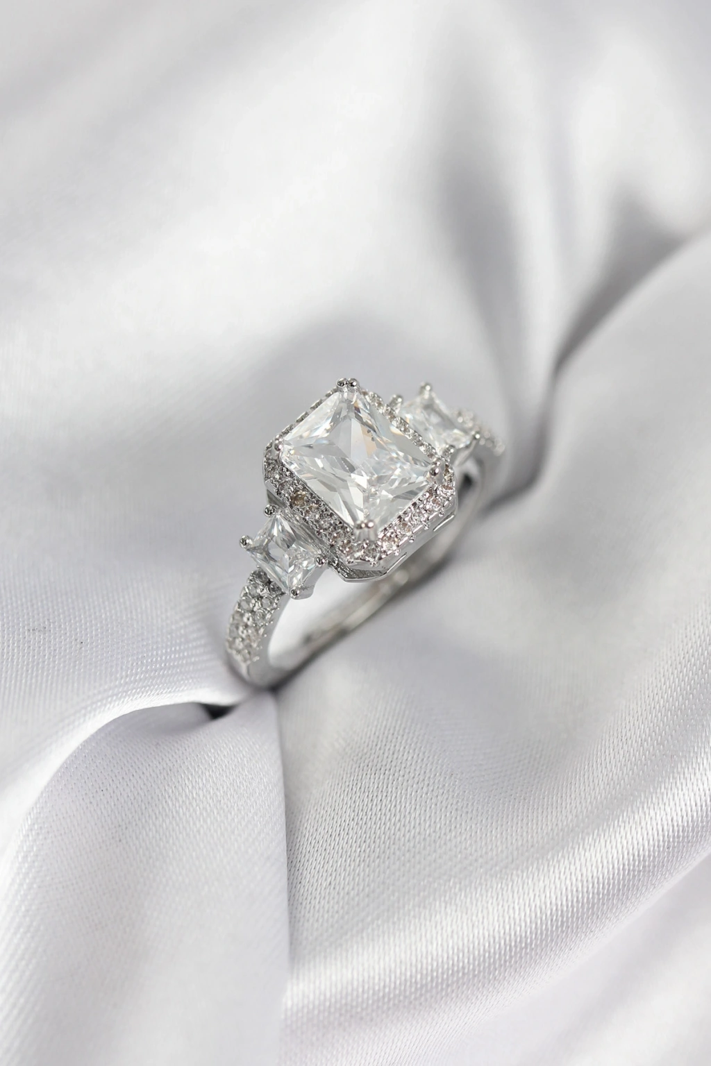 Gümüş Renk Kare Baget Zirkon Taşlı Tek Taş Model Kadın Yüzük