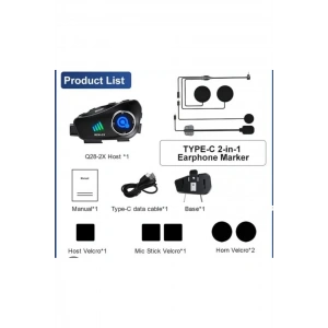 Q28 2x 2 Eşleşmeli Motosiklet Kask Bluetooth Kulaklık 1080p Kamera Su Geçirmez Intercom