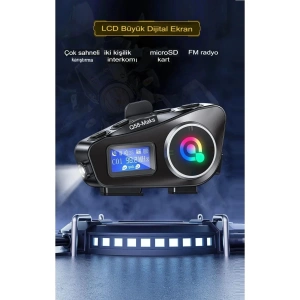 Q58-max Radyolu 2 Kişi Bağlantılı Bluetooth Kask Kulaklık Ekranlı Fenerli Müzik Ve Telsiz Intercom