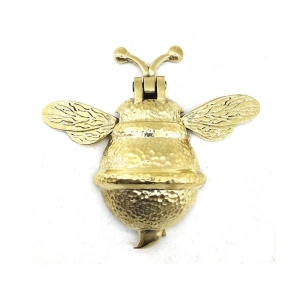 Antika Tarz Dekoratif Pirinç Arı Kapı Tokmağı, Taktak - Küçük,123x150mm, Sarı
