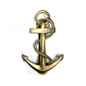 Antika Tarz Dekoratif Pirinç Halatlı, Çapa, Denizci, Gemici Kapı Tokmağı, Taktak - 170x60mm, Sarı