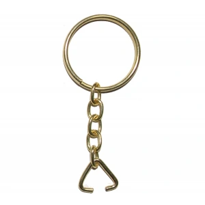 Anahtarlık Halkası, Halka + Zincir + Üçgen, 24mm, Altın, Sarı, 1 Adet