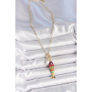 İnci Detaylı Zirkon Taşlı Rainbow Balık Figürlü Gold Renk Pirinç Kolye