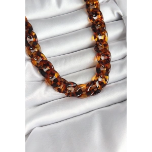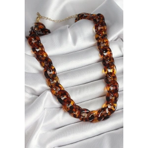 Leopar Desenli Mika Kalın Zincir Kadın Kolye