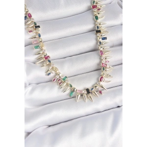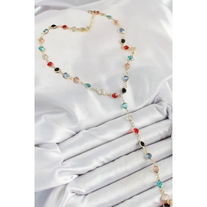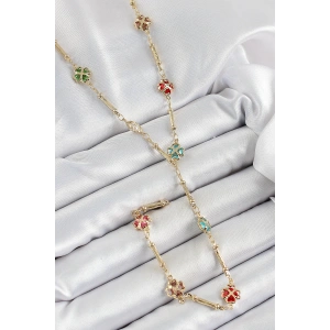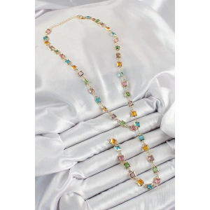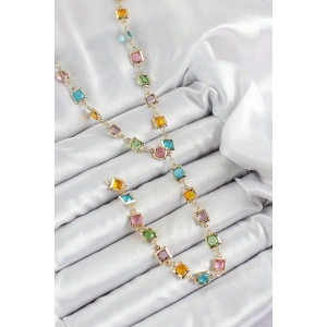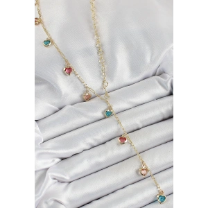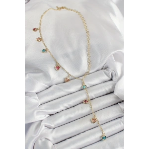 Gold Karışık Renk Zirkon Taşlı Y Pirinç Kolye