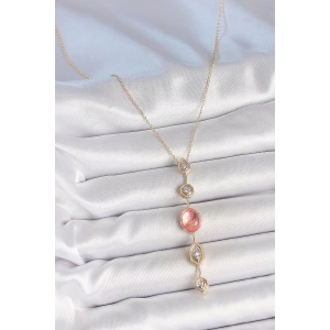 Pirinç Zincir Pembe Gold Renk Zirkon Taşlı Y Kolye