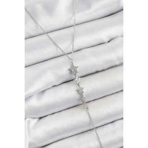 Pirinç Zirkon Taşlı Sıralı Yıldız Figürlü Y Model Gümüş Renk Kadın Kolye