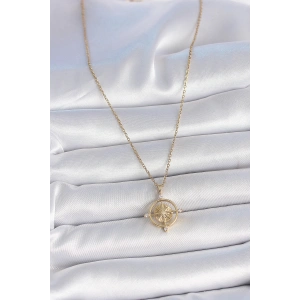 316L Çelik Gold Renk Zincir Zirkon Taşlı Pusula Model Kadın Kolye