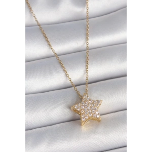 316L Çelik Gold Renk Zincir Zirkon Taşlı Yıldız Model Kadın Kolye