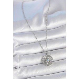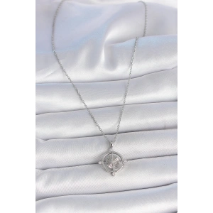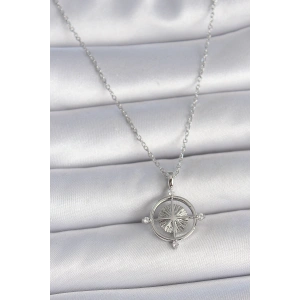 316L Çelik Gümüş Renk Zincir Zirkon Taşlı Pusula Model Kadın Kolye