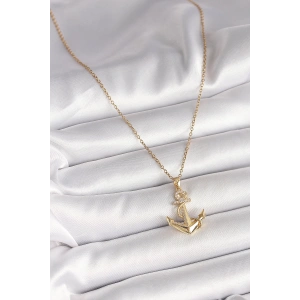 316L Çelik Gold Renk Zincir Zirkon Taş Detaylı Çapa Model Kadın Kolye