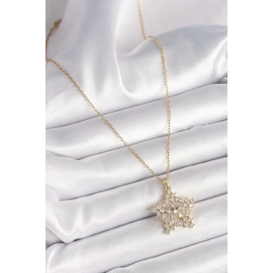 316L Çelik Gold Renk Zincir Zirkon Taşlı Kar Tanesi Model Kadın Kolye