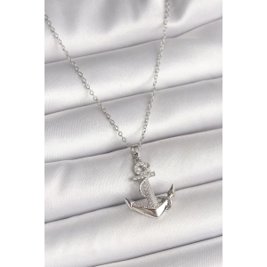 316L Çelik Gümüş Renk Zincir Zirkon Taş Detaylı Çapa Model Kadın Kolye