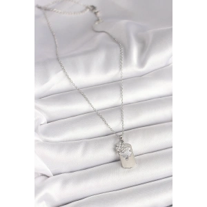 316L Çelik Gümüş Renk Pembe Mineli El Figür Tarot Kolye