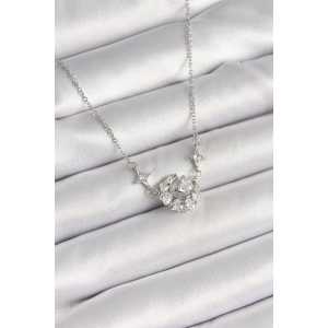 316L Çelik Gümüş Renk Zirkon Taşlı Hilal Kalp Model Kadın Kolye