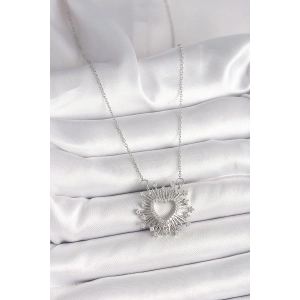 316L Çelik Gümüş Renk Zirkon Taşlı Kalp Model Kadın Kolye