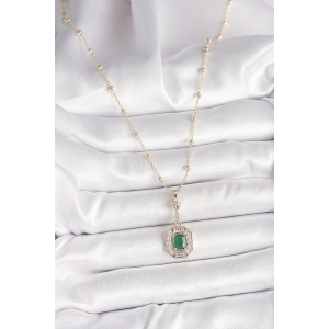 Pirinç Gold Renk Zirkon Taşlı Topçuk Zincir Serenay Model Kadın Kolye