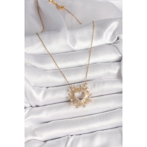316L Çelik Gold Renk Zincir Madalyon Zirkon Taşlı Kalp Model Kadın Kolye