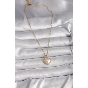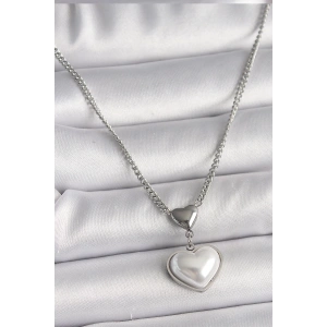 316L Çelik Gold Renk Zincir 3D İnci Kalp Model Kadın Kolye
