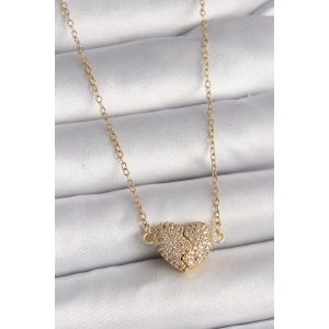 316L Çelik Gold Renk Zincir Zirkon Taşlı Kalp Model Kadın Kolye