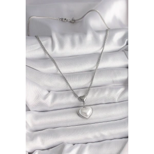 316L Çelik Gümüş Renk Topçuk Detay Zincir Kalp Model Kadın Kolye