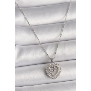316L Çelik Gümüş Renk Zincir Zirkon Taşlı Beyaz Mineli Kalp Model Kadın Kolye