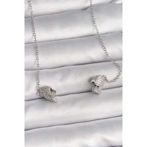 316L Çelik Gümüş Renk Zincir Zirkon Taşlı Kırık Kalp Model Kadın Kolye