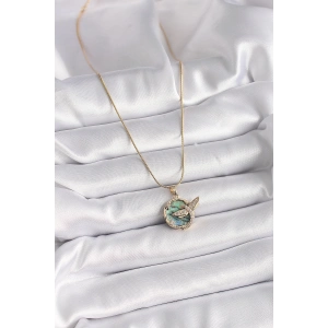 316L Çelik Gold Renk Zincir Zirkon Taşlı Yusufçuk Model Kadın Kolye