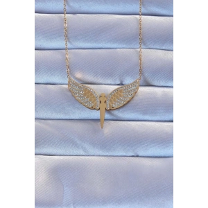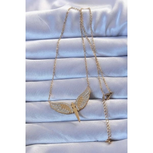 316L Çelik Altın Renk Zirkon Taşlı Mikail Kolye