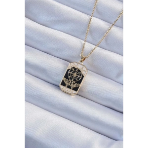 316L Çelik Zincir Altın Renk İşlemeli Siyah Mineli Tarot Kolye